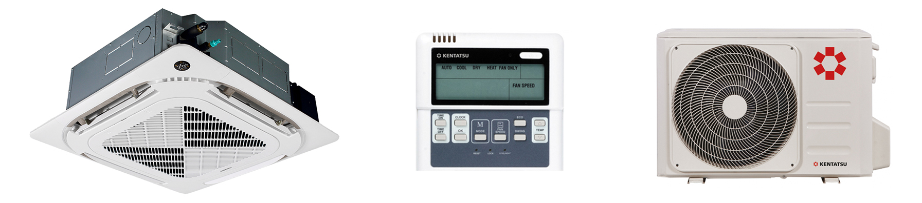 Встраивается в подвесную потолочную конструкцию, рассчитан на охлаждение и обогрев помещения площадью до 130 кв.м.