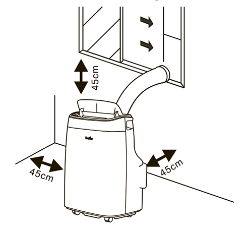 Современный стильный передвижной кондиционер, работает только на охлаждение, имеет автоматический режим и режим комфортного сна, таймер, управление с пульта ДУ или через панель на блоке. Устанавливается рядом с окном или специальным отверстием в стене, через которое необходимо вывести воздуховод для отвода горячего воздуха (воздуховод в комплекте).