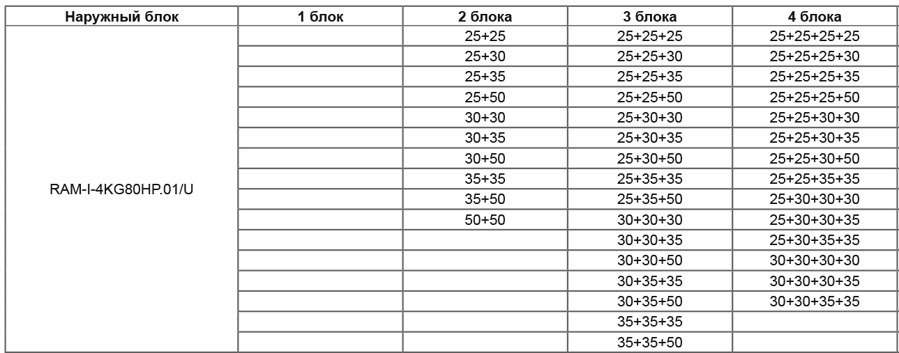 При подключении нескольких внутренних блоков, суммарная производительность которых превышает номинальную мощность наружного блока, при одновременной эксплуатации каждый из них будет работать со сниженной производительностью. Такой вариант подключения допускается в случае, когда внутренние блоки используются не одновременно (например, ночью – спальня, днем – гостиная).