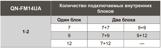 Количество подключаемых внутренних блоков: