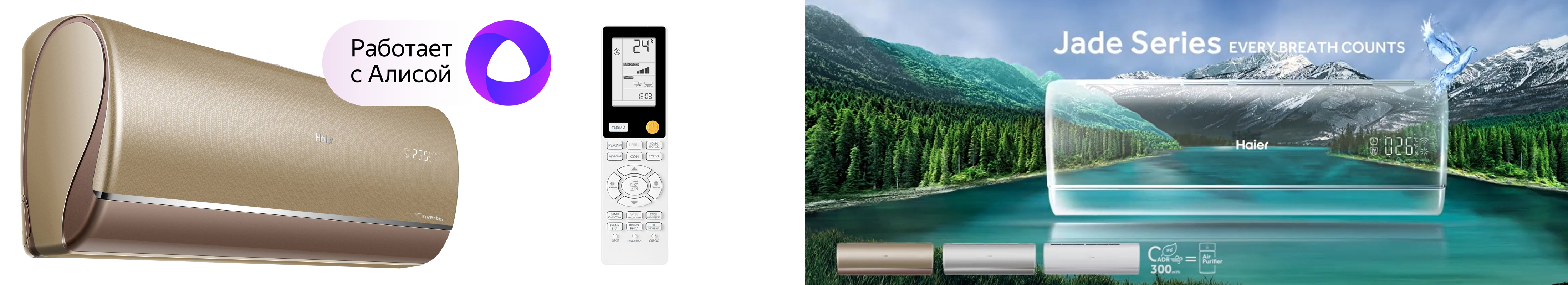 Внутренние блоки премиальной серии Jade для мульти-сплит-систем — максимальный функционал, эстетика и высочайшее качество. Линейка представлена в трех цветах: белый, серебро и золото. На передней панели блока расположен информационный LED-дисплей, а так же индикатор загрязненности воздуха. Все внутренние блоки этой серии оснащены встроенным модулем Wi-Fi для удаленного управления через смартфон.