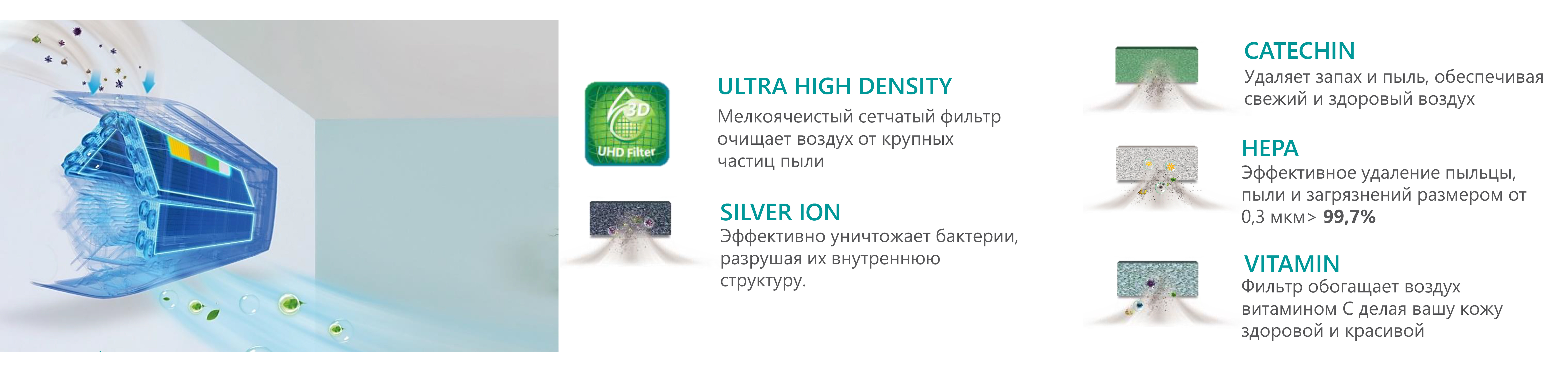 Комплексная очистка воздуха включает в себя 5 фильтров