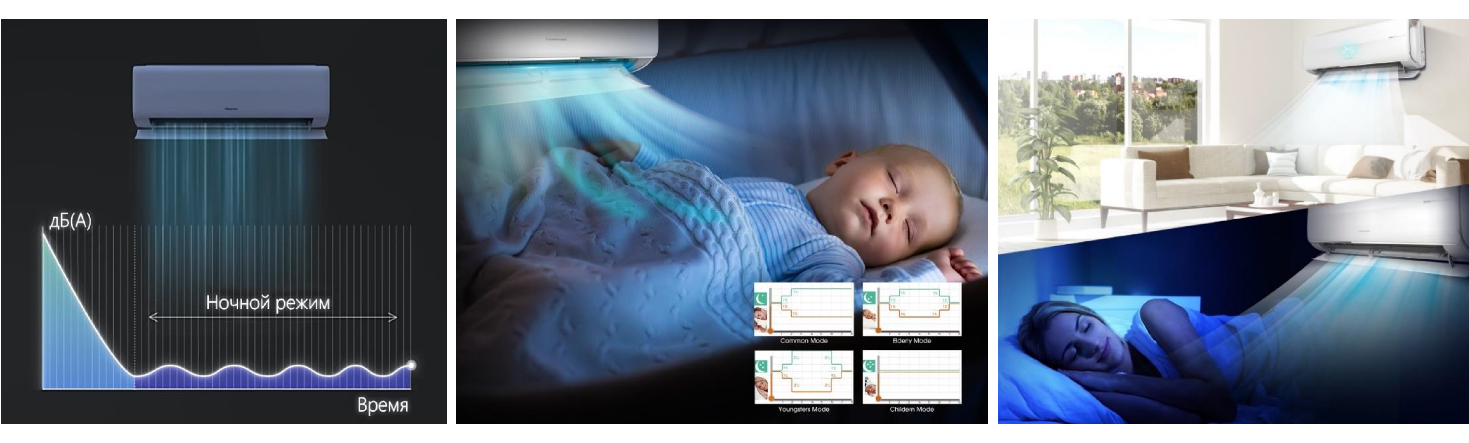 В режиме Quiet работа кондиционера практически не слышна, уровень шума не превышает 18 дБ.