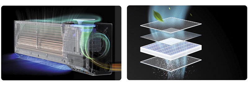 • Система самоочистки внутреннего блока способом заморозки/оттаивания/стерилизации при +56 °С — эффективно справляется с любыми загрязнениями, всегда содержит теплообменник в состоянии идеальной чистоты.