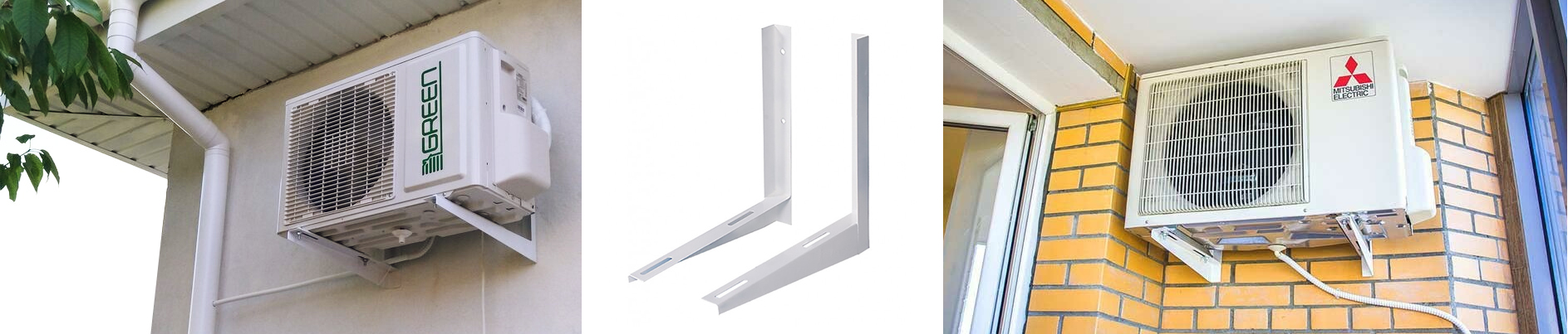 Надежные, высокопрочные стальные кронштейны применяются для монтажа наружных блоков спит-систем на вертикальной поверхности здания. Крепятся при помощи анкеров. Кронштейны покрыты белой полимерной краской, что придает им эстетичный вид, а также является защитой от различных атмосферных воздействий и коррозии.