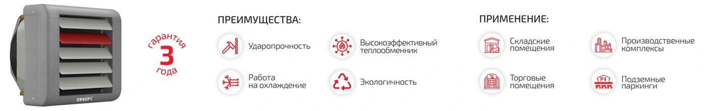 Водяной тепловентилятор ГРЕЕРС серии BC представлен в высокопрочном корпусе из вспененного полипропилена, обеспечивает минимальные шумовые показатели. Предназначен для отопления общественных, торговых и промышленных объектов: производственно-складских комплексов, спортивных объектов, тепличных и сельскохозяйственных комплексов, автомоек и автомастерских.