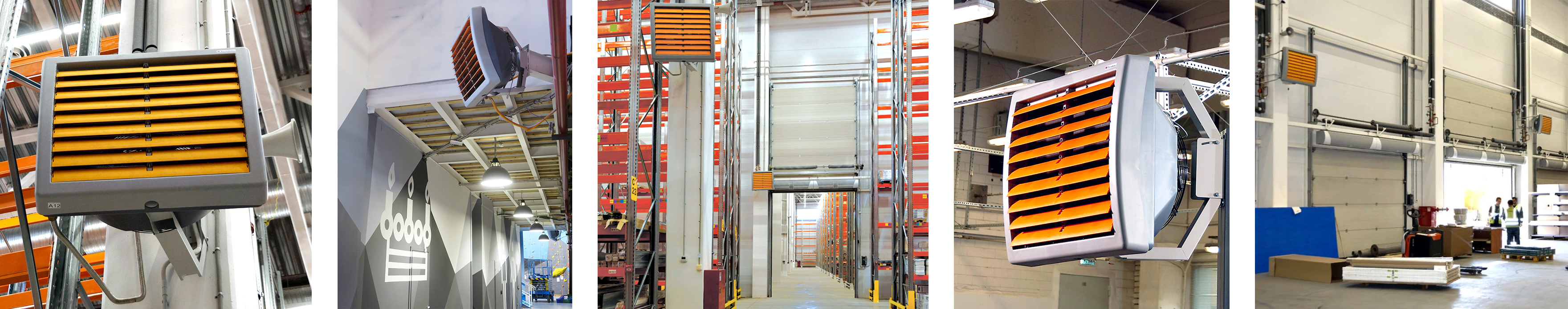 Тепловентиляторы с водяным источникам тепла применяются для основного или дополнительного обогрева офисных, административных, складских, промышленных помещений (магазины, стадионы, склады, ангары, автосервисы). Допускается размещение во взрывоопасных зонах класса В-Iб и пожароопасных зонах классов ПI, ПIIа и ПIII (по ПУЭ) при отсутствии капельной влаги, тумана. Не применять в автомойках и гальванических цехах.