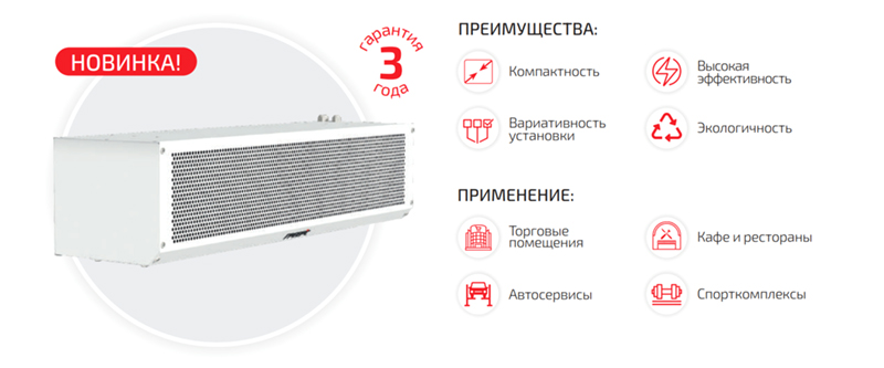 Компактные воздушные завесы с водяным нагревом созданы для проемов высотой от 2 до 4,5 м.