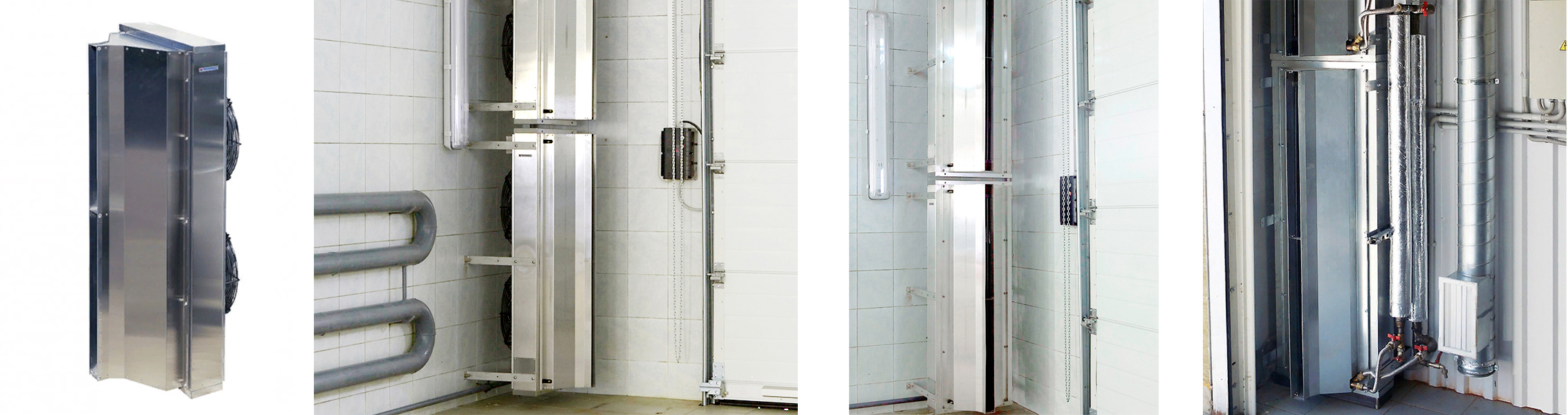 Промышленная тепловая завеса шиберующего (отсекающего) типа из нержавеющей стали с защитой корпуса IP54 (допускается капельная влага, туман). Устанавливается внутри помещения, горизонтально над проемом или вертикально, сбоку от него, как можно ближе к краю. При большой ширине проема можно располагать сразу несколько завес вплотную друг к другу и управлять ими с одного пульта. Применяется в складских помещениях, гаражах, производственных предприятиях, ангарах, самолетных и вертолетных площадках, автомойках и других помещениях большой площади.