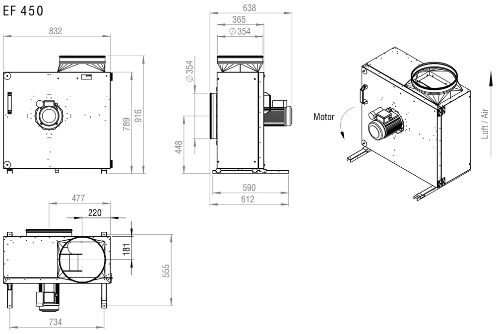 • Двигатель расположен на дверце — свободный доступ для обслуживания и защита от попадания жировых загрязнений.