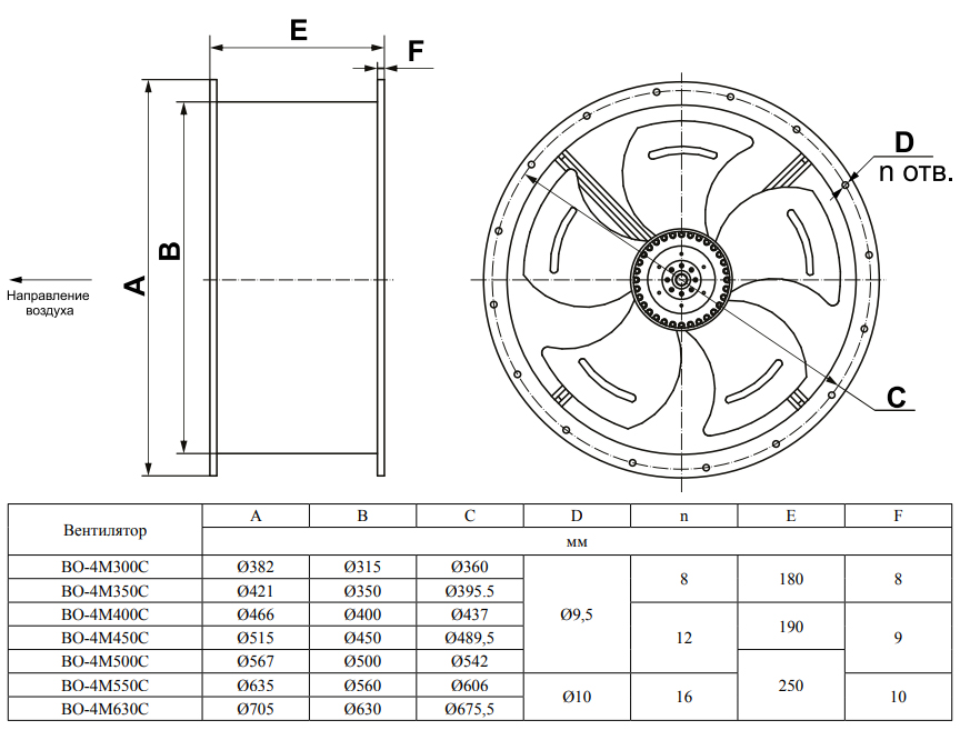 Вентилятор типа С состоит из корпуса, в виде обечайки с круглыми фланцами, внутри которого находится крыльчатка и электродвигатель.
